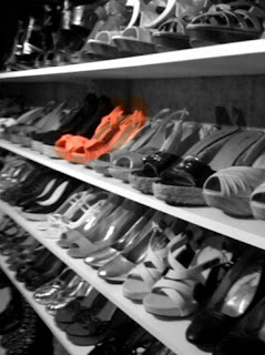 If it hasn’t become evident yet, I’m officially putting it out there: I have a small shoe obsession. I was playing around with my photo editing program and thought this turned out kind of neat. This is a shot of a portion of my shoe closet – the wedges.