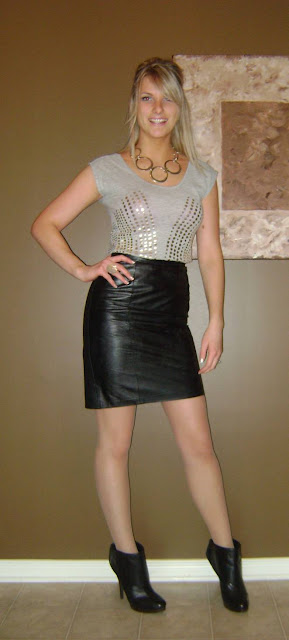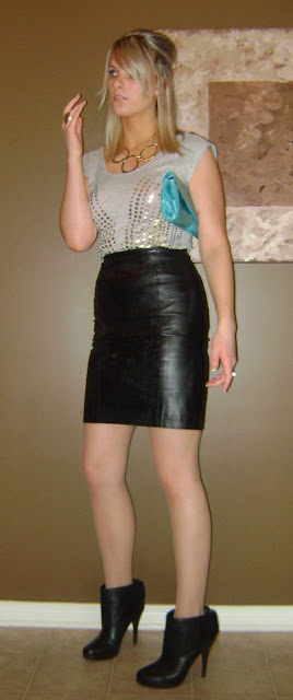 Old Navy top, ADA leather skirt, Aldo booties,