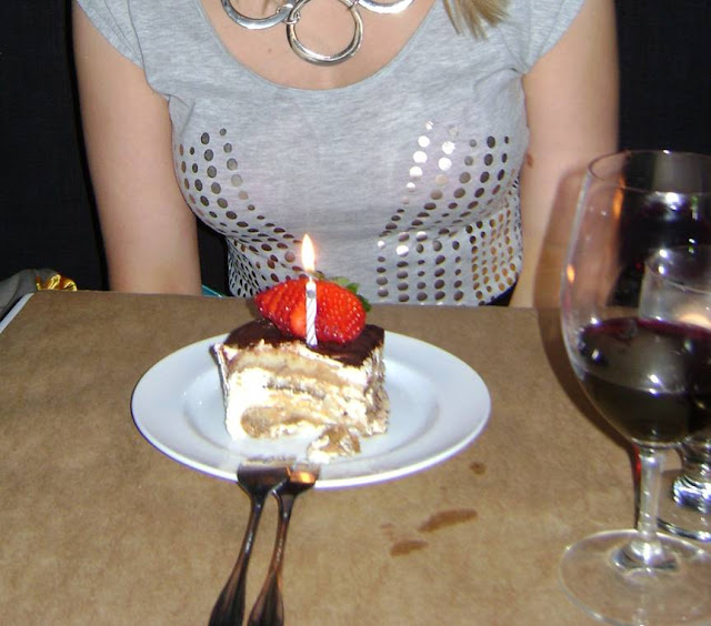 My girl friend (LM) took me out for my birthday this weekend. We went to this awesome little Italian bistro and it was so good. We both had pasta, split a bottle of wine and she surprised me with tiramisu (birthday) cake (candle and all). Afterwards, we headed over to see our friend at a swanky hotel in the downtown core for a drink. Thanks so much for the great evening, LM!