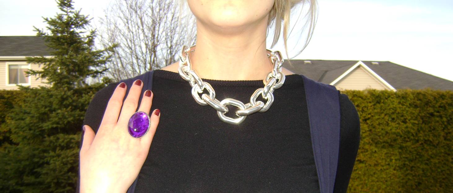 Le Chateau pashmina, Joe necklace, Suzy ring, Ardène tights,