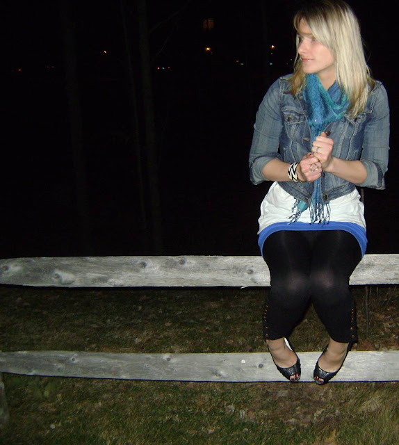 Garage denim jacket, DIY tee, Stitches skirt (gift as seen here), Le Chateau pashmina,