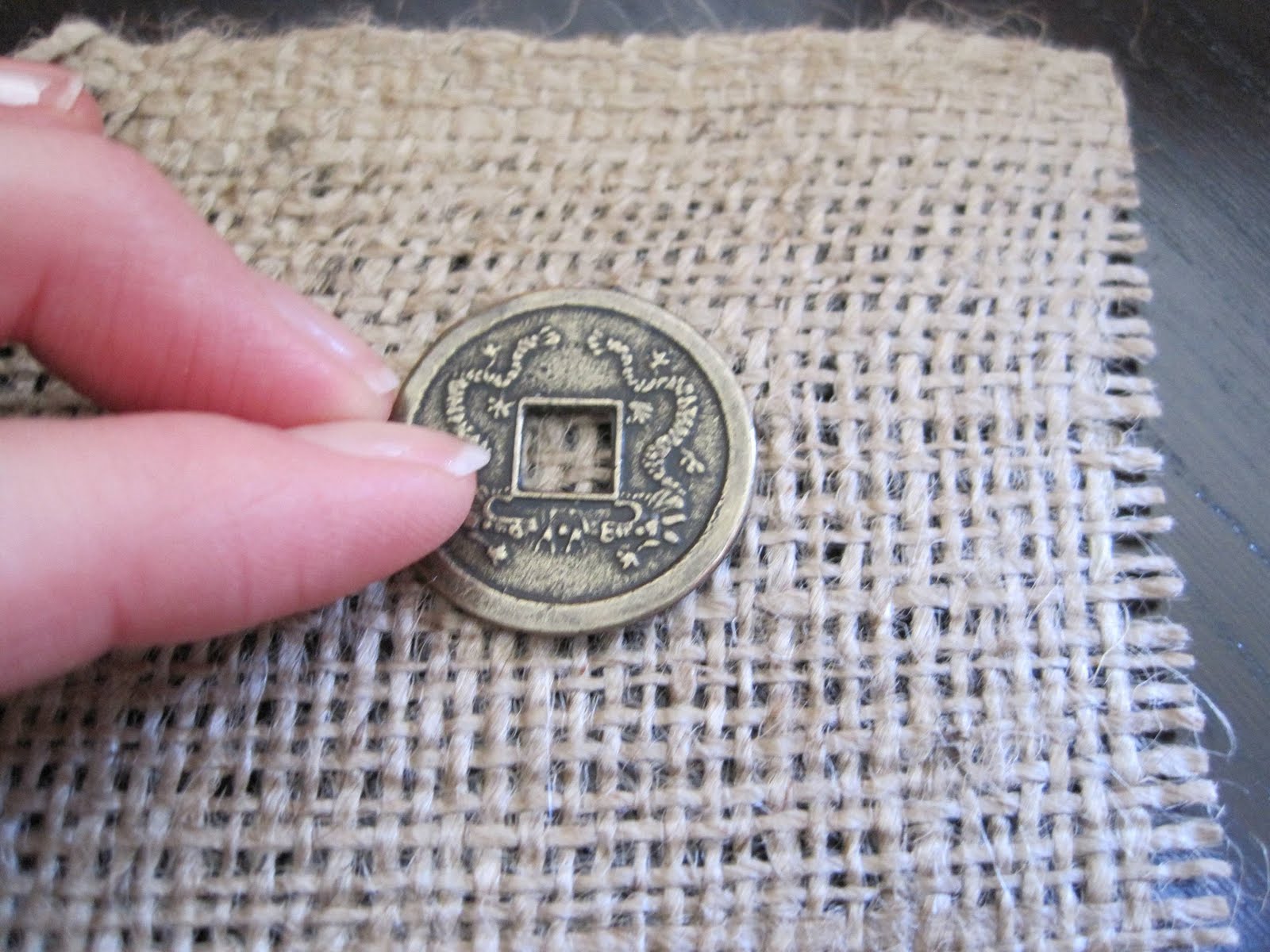 This is so simple, so quick, and so awesome. All you need is a hot glue gun, a frame, a small piece of burlap (to fit your frame) and some sort of embellishment (a coin, ribbon, a bead, a button, etc. Be creative!).