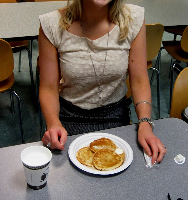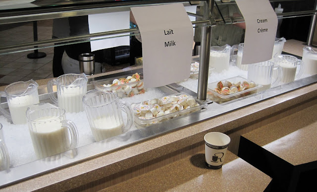 My work held a Pancake Tuesday for employee appreciation and it was great! Of course a favourite work friend of mine and I headed down to the cafeteria to take advantage of it. Along with the pancakes they were serving coffee and tea but I had to get my favourite drink instead: milk.