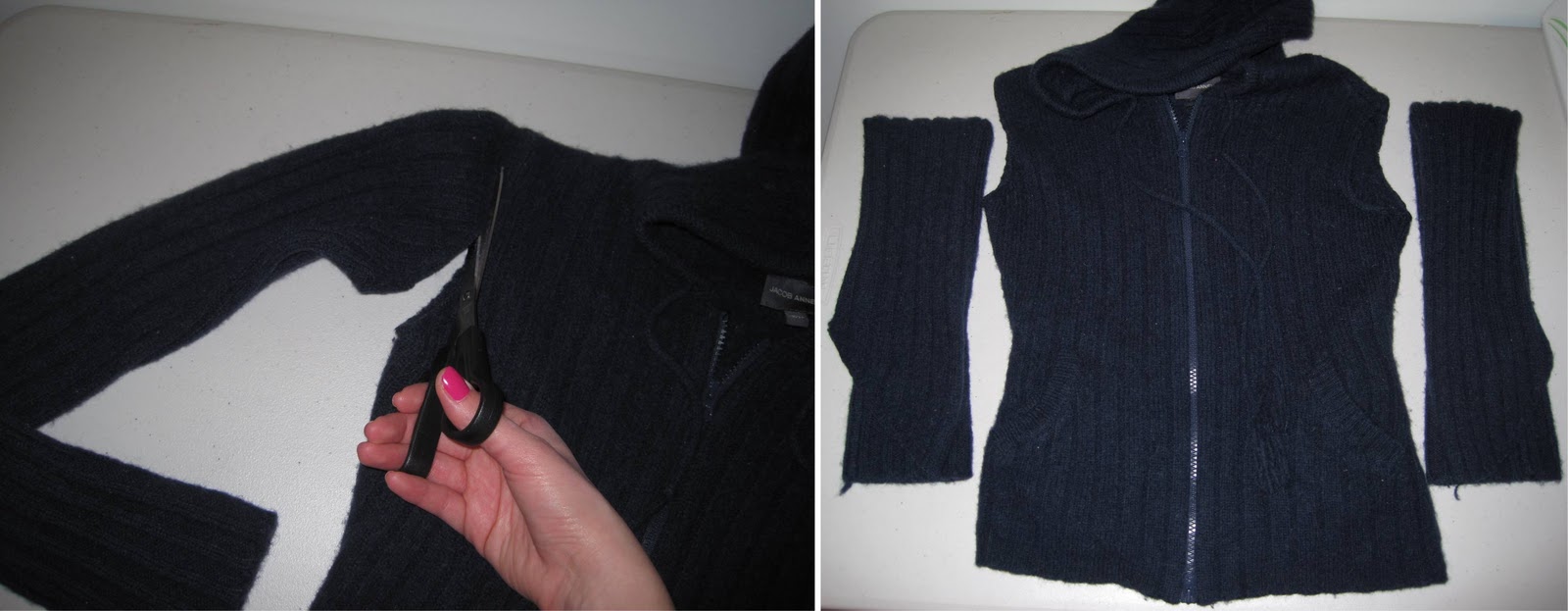 There are a few things I’m donating that I felt could be used for DIY (it’s not like I have anything to lose if I’m donating it, right? Right). I decided to make some cute leg warmers with this old favourite sweater from Jacob. In the process, I made a vest too. It was super easy and if any of you give this a try, send me your photos and I’d love to see ’em!
