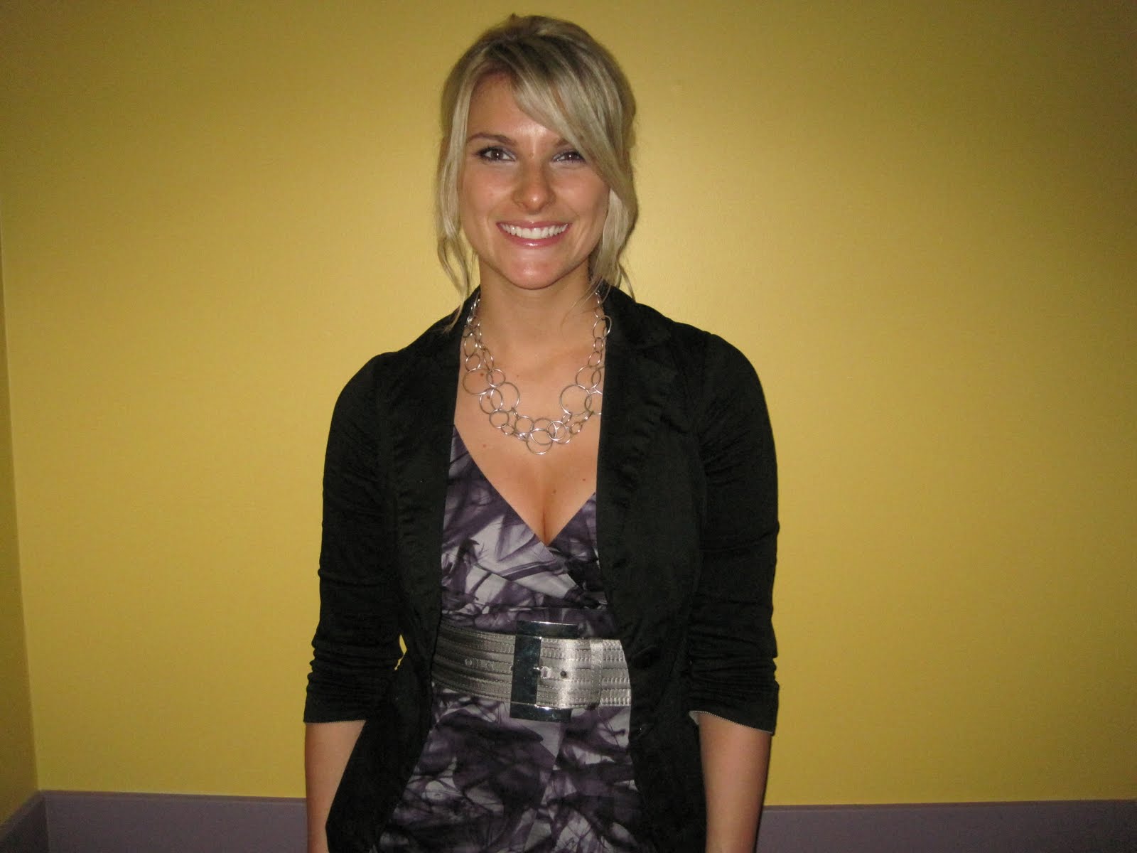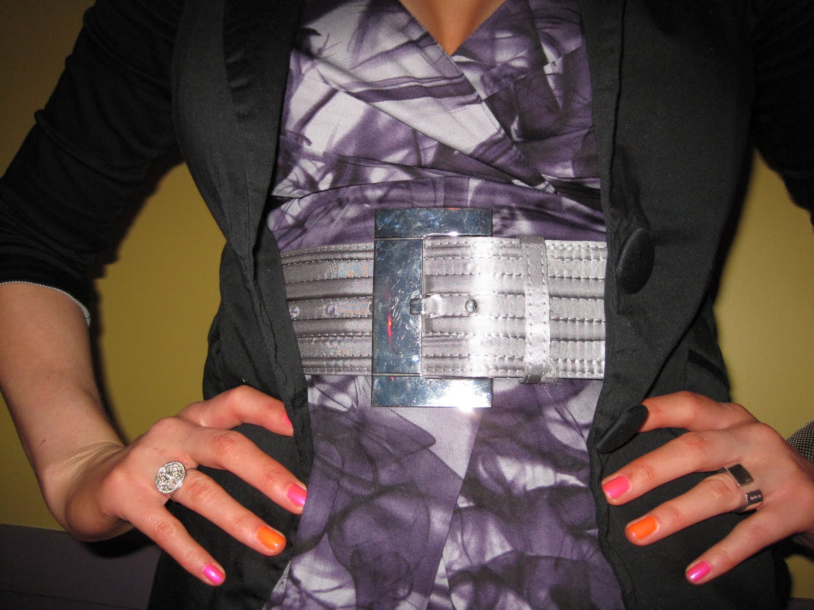 Dynamite blazer (last seen here) & dress, Guess slingbacks (last seen here), Suzy belt, necklace & ring