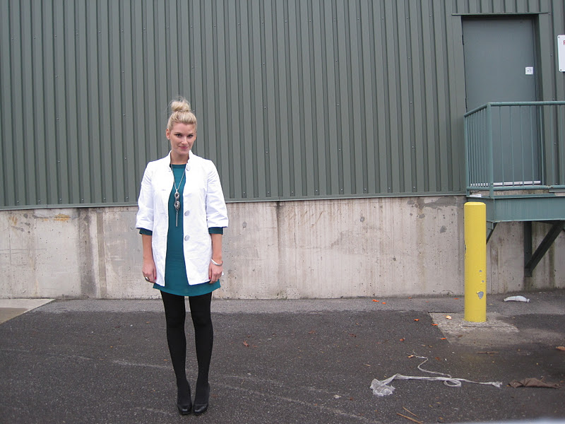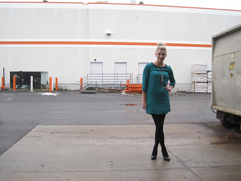 Joe Fresh jacket (last seen here), H&M dress, unknown tights, Aldo heels (last seen here) & Suzy necklace