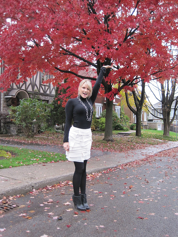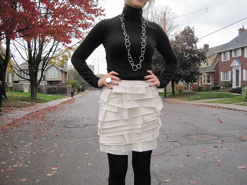 F21 jacket (last seen here), Smart Set turtleneck, F21 skirt, unknown tights,