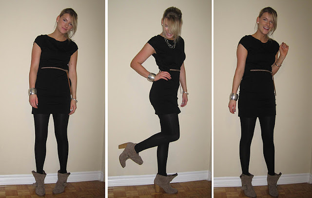 Joe Fresh dress, Qupid boots, American Eagle belt, uknonwn tights, Auslini bangle & Suzy necklace