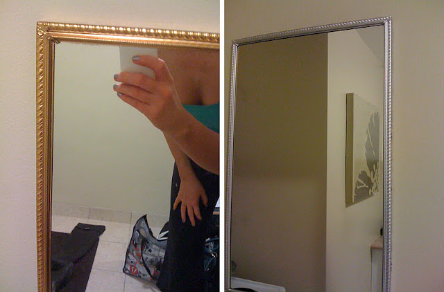 3. & 4. My grandparents gave me this gold mirror, I (spray) painted it silver.