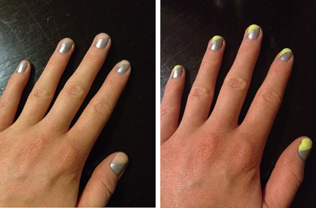 I recently picked up two China Glaze nail polishes at Sally as they were on sale, two for $5. I’ve worn the pink a couple times but had yet to rock this neon yellow (Celtic Sun #1015), but after seeing the inspiration photo below, I knew exactly what I wanted to do!
