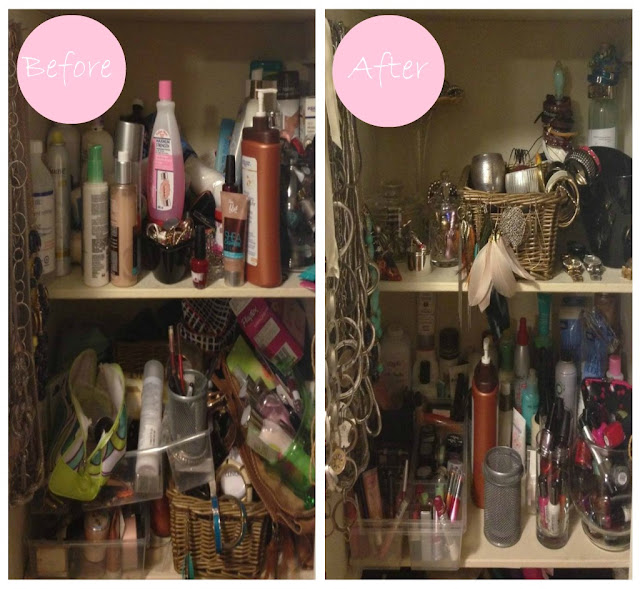 My make-up/accessories/linen closet has been one of these things; haunting me every weekend while I’m trying to do fun things (the nerve!) and every time I open it up to grab something (or throw my laundry in the basket below), I wanted to shudder. Then, instead of tackling it, I would quickly close the door and, well, run off and do something fun instead.