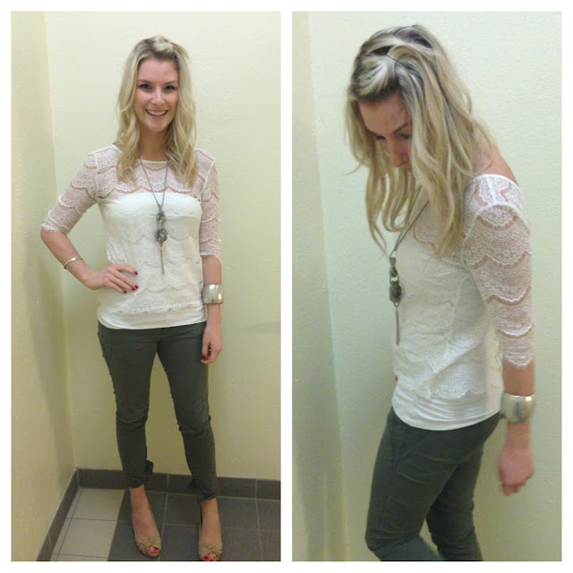 * Dynamite lace top (with an old Dynamite tube top underneath) which you’ve seen in my Fall Fashion vlog & with similar pants and similar shoes (but not the same). Kind of bummed I didn’t get a picture of the back of this top, it’s a v-neck in the back with a zipper running all the way down.