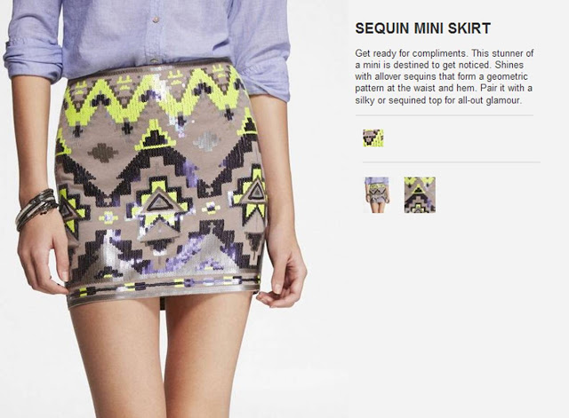 Now I’m no stranger to a sparkly mini skirt, but this one I really love for two things, (1) it’s tribal pattern (I actually saw a girl in Vegas when I was at the I Heart Radio concert wearing something similar but of course it was from a store in another state and not in Canada), and (2) the colour scheme. I love the idea of taupe, purple, lime & black together. What a great combination!
