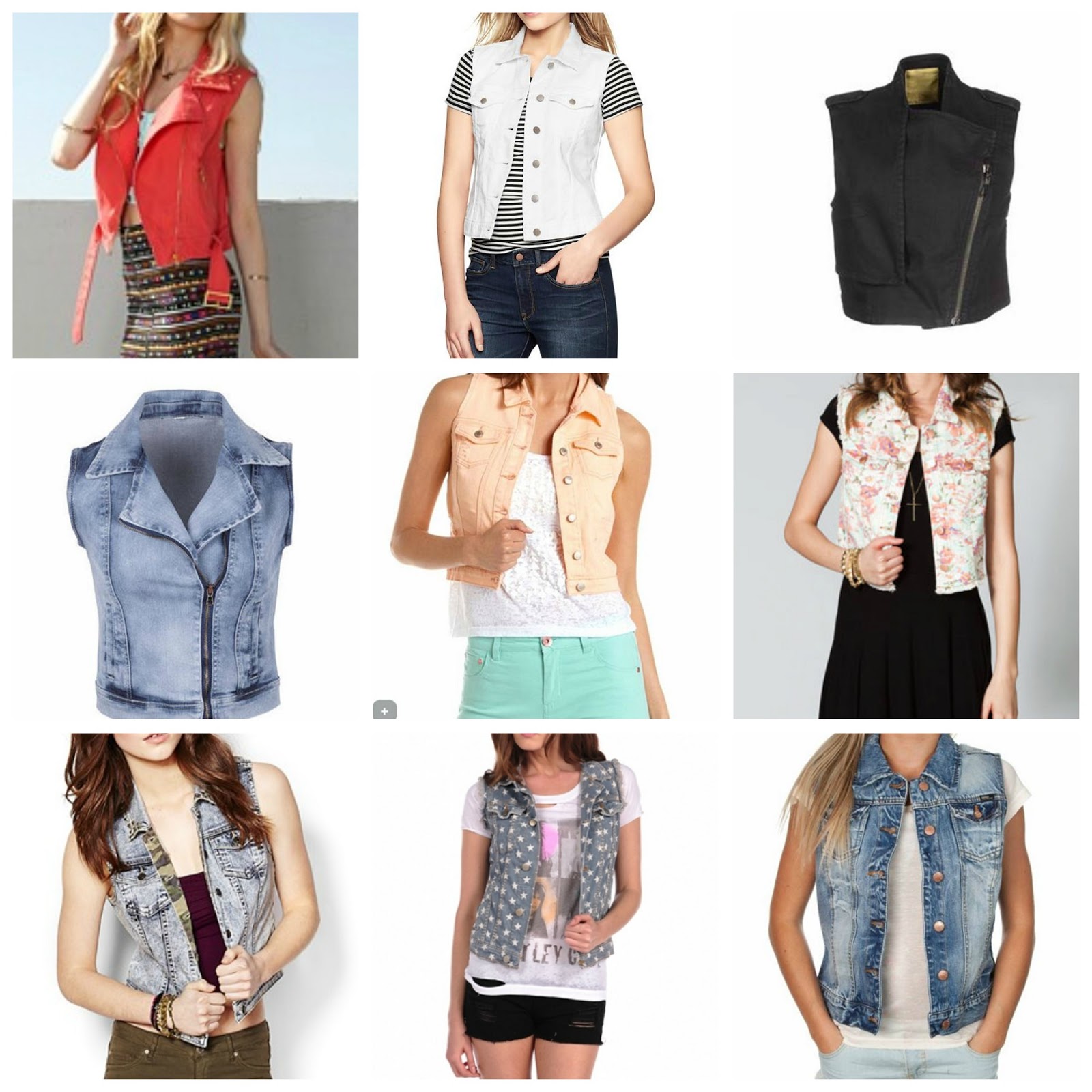 I love the idea of pairing this over a sweet sundress with gladiator sandals or go totally Coachelle/music-festival inspired with booties. I think it’d be sweet with black pants and a skimpy tank underneath too. I love it so much I think I’m going to order the red one from F21 for a coloured take on this trend. (I also really love the one from Delia’s with the off-set zipper and great wash; so feminine, which I gravitate towards).