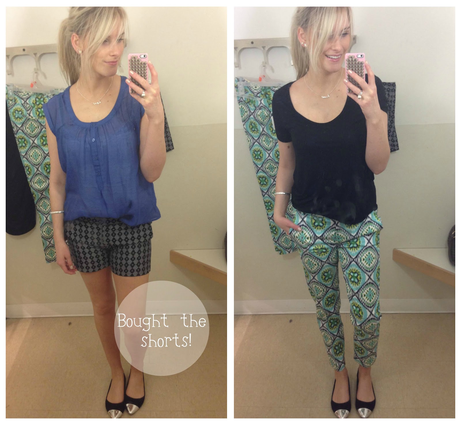 Black & white shorts, $29 | Printed pants, $29 (did not purchase)