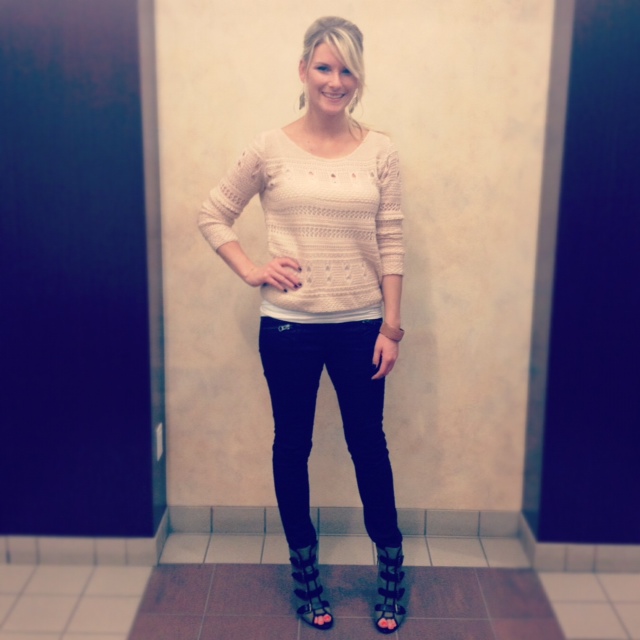 * H&M black pants–my faves (from my trip Vegas; haul video HERE)–which you’ve seen with a blush sweater & buckle open-toe booties.