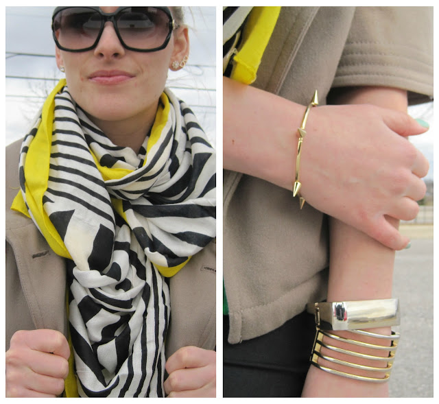 * Accessories: Le Chateau pashmina, Gucci shades, Detox spike bangle, F21 square bangle & Joe Fresh striped bangle.
