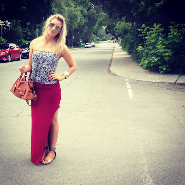 Outfit deets: Giant Tiger skirt worn as a top (so old, like 15 years old, you guys #nojoke), Sirens maxi skirt with slit & Spring gladiators (old).