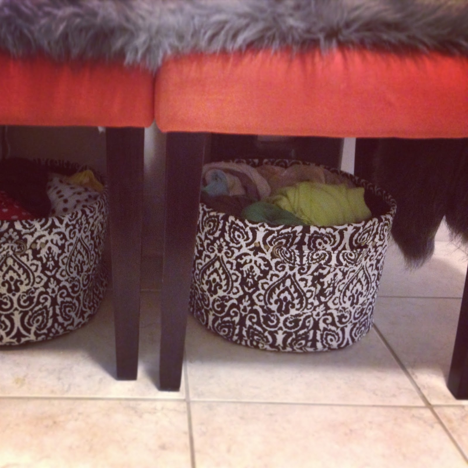 After manicures, shopping ensued and I picked up these two damask-style baskets from Winners ($13 each) to hold my pashminas.