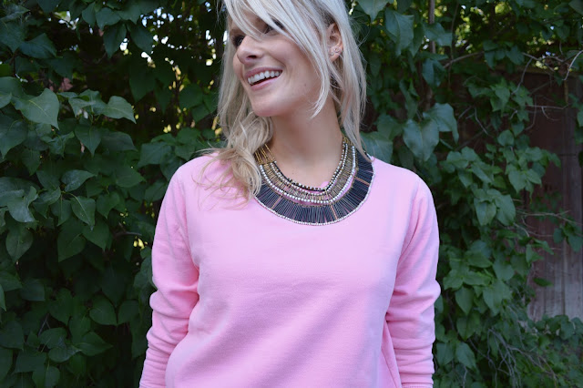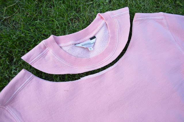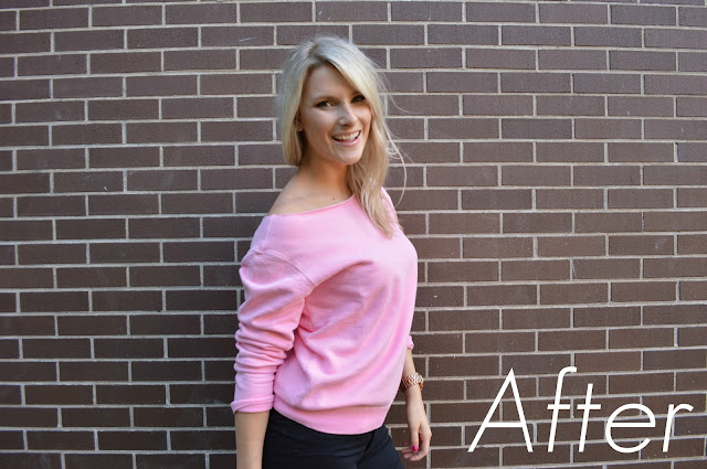 While Northern Reflections is still geared towards a slightly more mature crowd, they are definitely re-branding themselves to appeal to a younger market. That said, I was stoked when I circled around the store and found this perfectly faded pink sweatshirt (which also comes in white, blue and grey). After trying it on, I concluded an x-small would be a good place to start but the snug, restrictive neckline had to go.