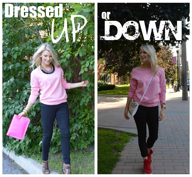 Keep reading to see how I changed up this sweatshirt and how I styled it two different ways; for day and for night.