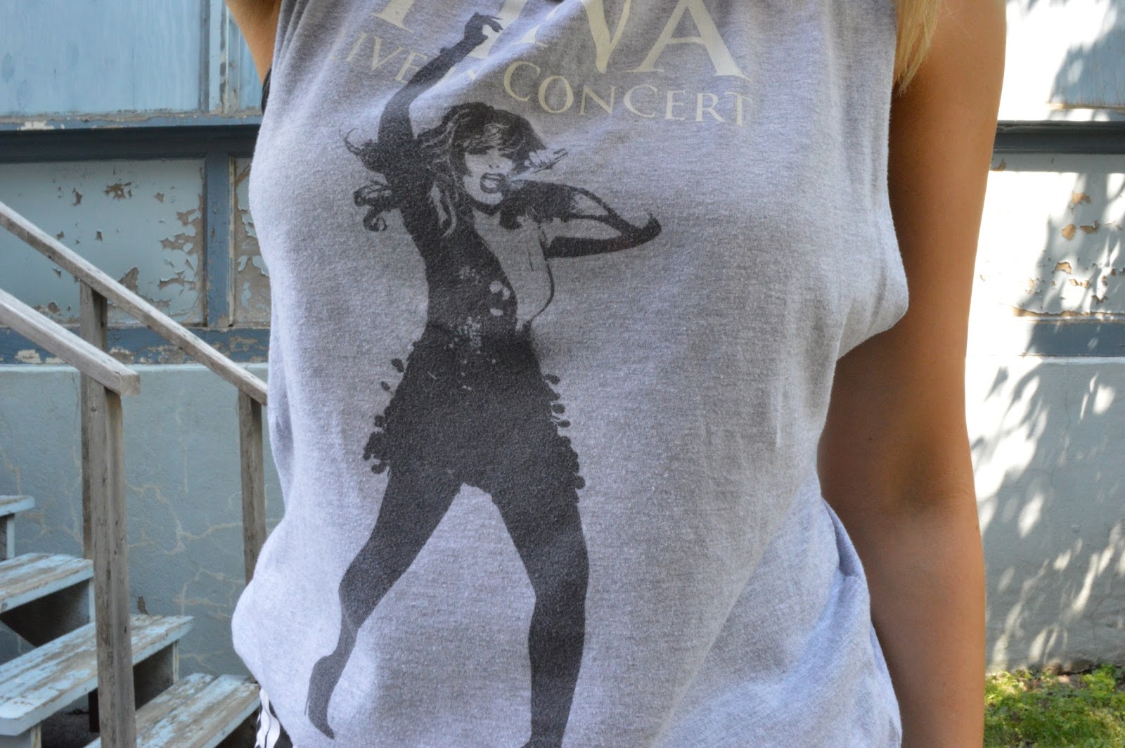 * DIY Tina Turner concert top (thrifted for $2 & cut up; I used THIS tutorial, sort of) which I made for the gym and have only worn it out instead.