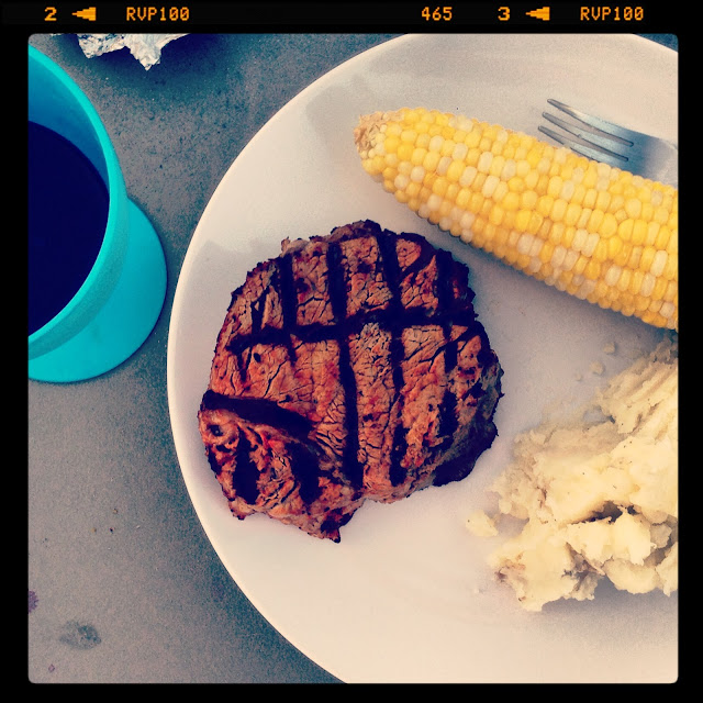 Sunday night BBQ once again at #Skybox2013; always a good time. Marco made us steaks and mine was perfectly cooked the way I like, rare. This was also my first corn on the cob of the season. Last week, Sarah and I had a conversation about corn on the cob, and really, it’s non-health benefits despite being a ‘vegetable’. Despite all that, it still tasted delicious and like summertime.