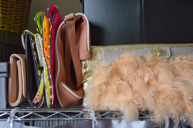 I keep my clutches together and the majority in the brown basket on the left at the top (not really shown). The overspill is what you’re seeing and I love having my Asos feather clutch on display because it’s so feminine and works with the colours of the room. Additionally, I don’t use it a ton so it’s nice to have it out in the open as some sort of decor. And if I can add one more thing, when you’re in a space as small as mine, a lot of things become ‘decor’ (ha).