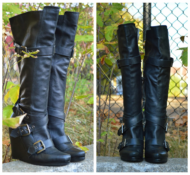 I had a couple complications with these boots, but I’m really pleased with the end result. These are boots I’ve had in my closet for 3+ years and had kind of forgotten about because the wedge on them was so massive; and I mean that in a height and unsturdy kind of way (but mainly height). I had worn them a couple times and then stored them under the, ‘These-make-me-6’6-so-I’m-not-wearing-them-anymore’ category. Now, after shaving off almost two inches, I can wear this more comfortably!