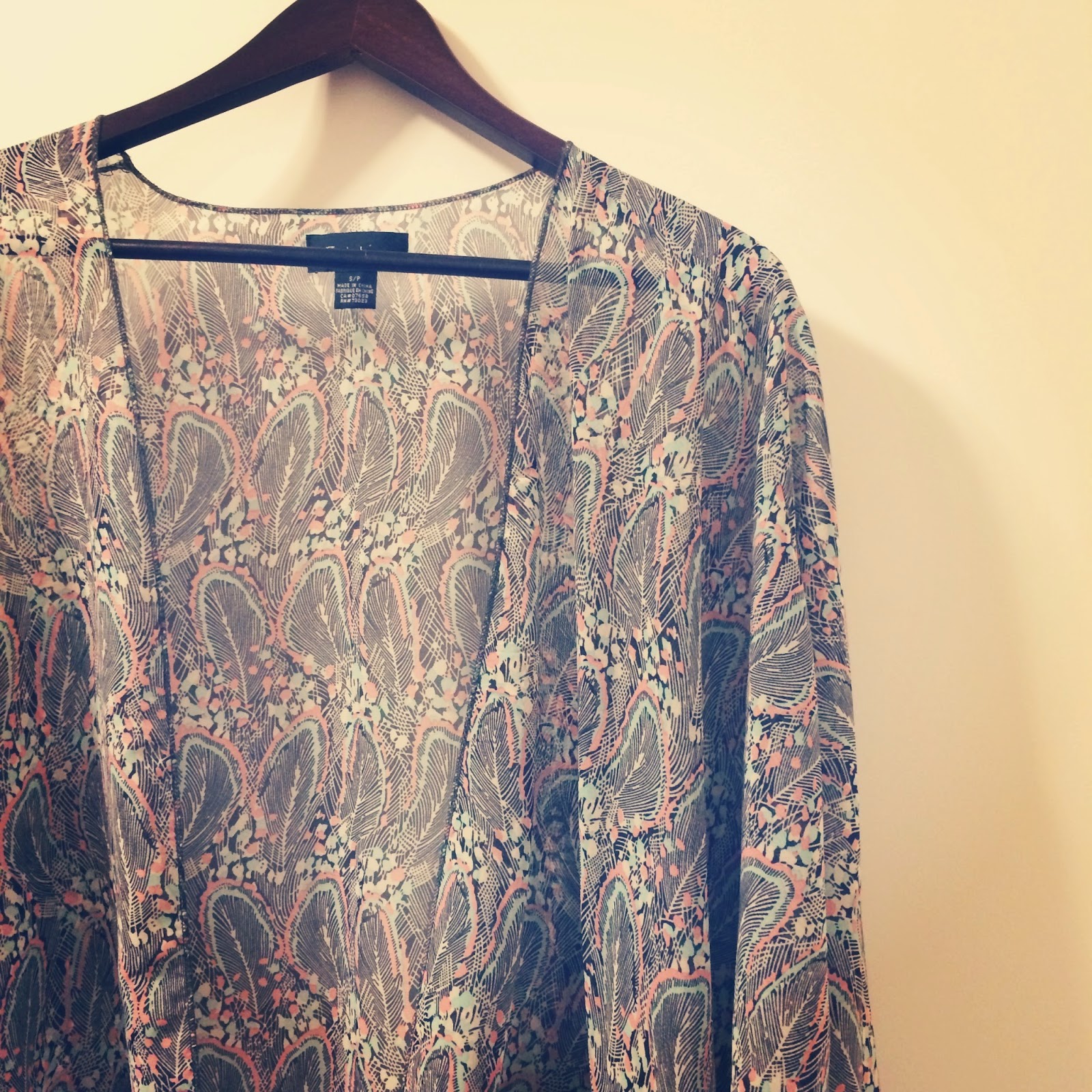 After spending several hours at home cleaning, I showered and headed out to another mall. I ended up scoring this cool feather-print kimono from Sirens. I went to two Sirens this past week and saw all their kimonos and just wasn’t sold–I must have missed this one and scooped it up for $15.