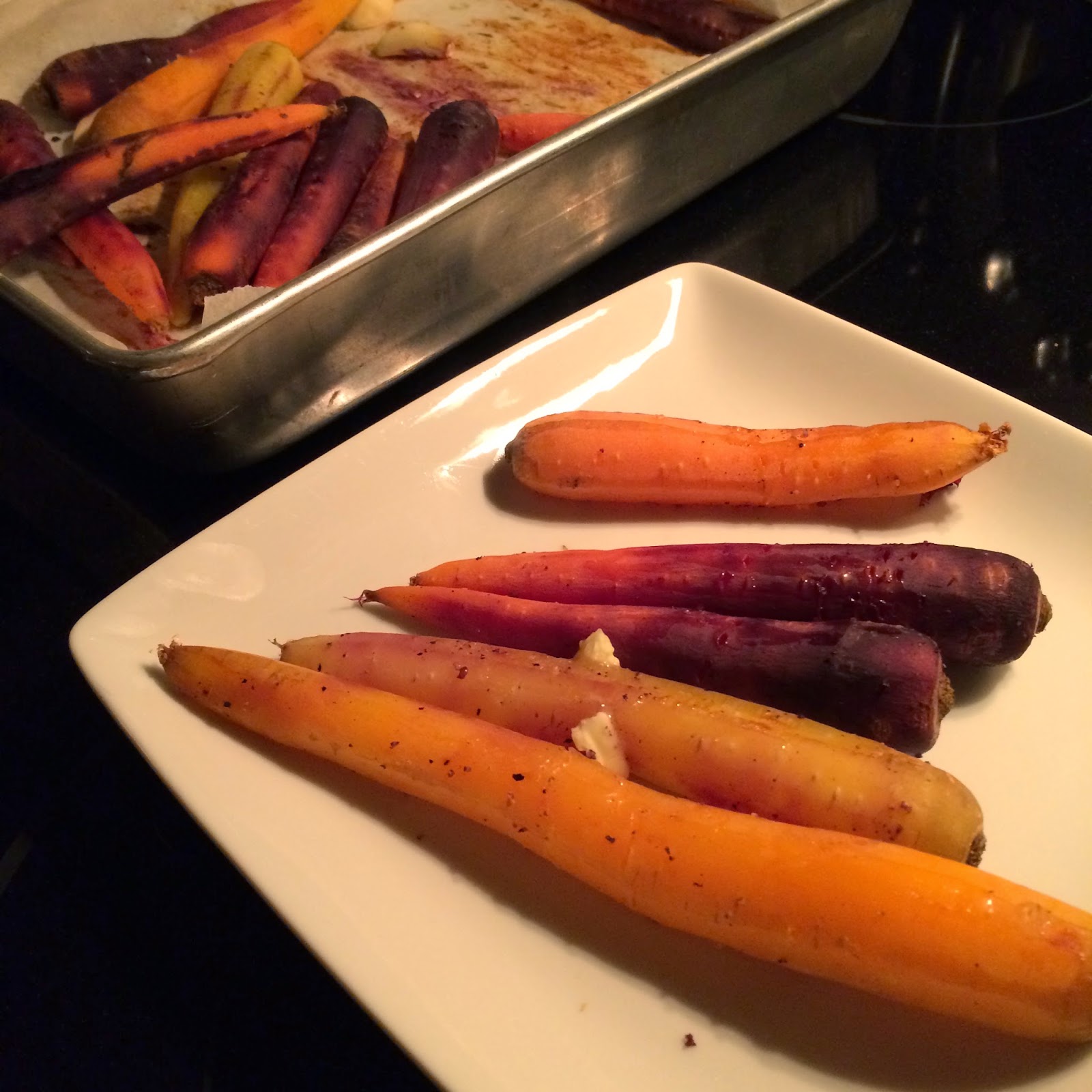 I was starving when I got home so I made some roasted heirloom carrots & sweet potato fries with sea salt.