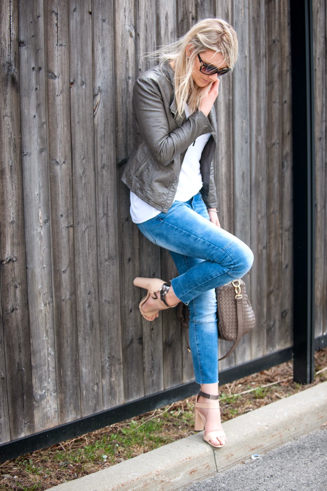 * Ashley B faux leather jacket which you’ve seen multiple times with an all-grey ensemble, when I went to Montreal with my guy, and with my other favourite jeans of the moment (in a more casual look).