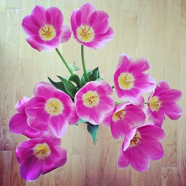 My girl friend who house sat came over for dinner earlier in the week with tulips (my fave!). Within three days they bloomed like crazy.