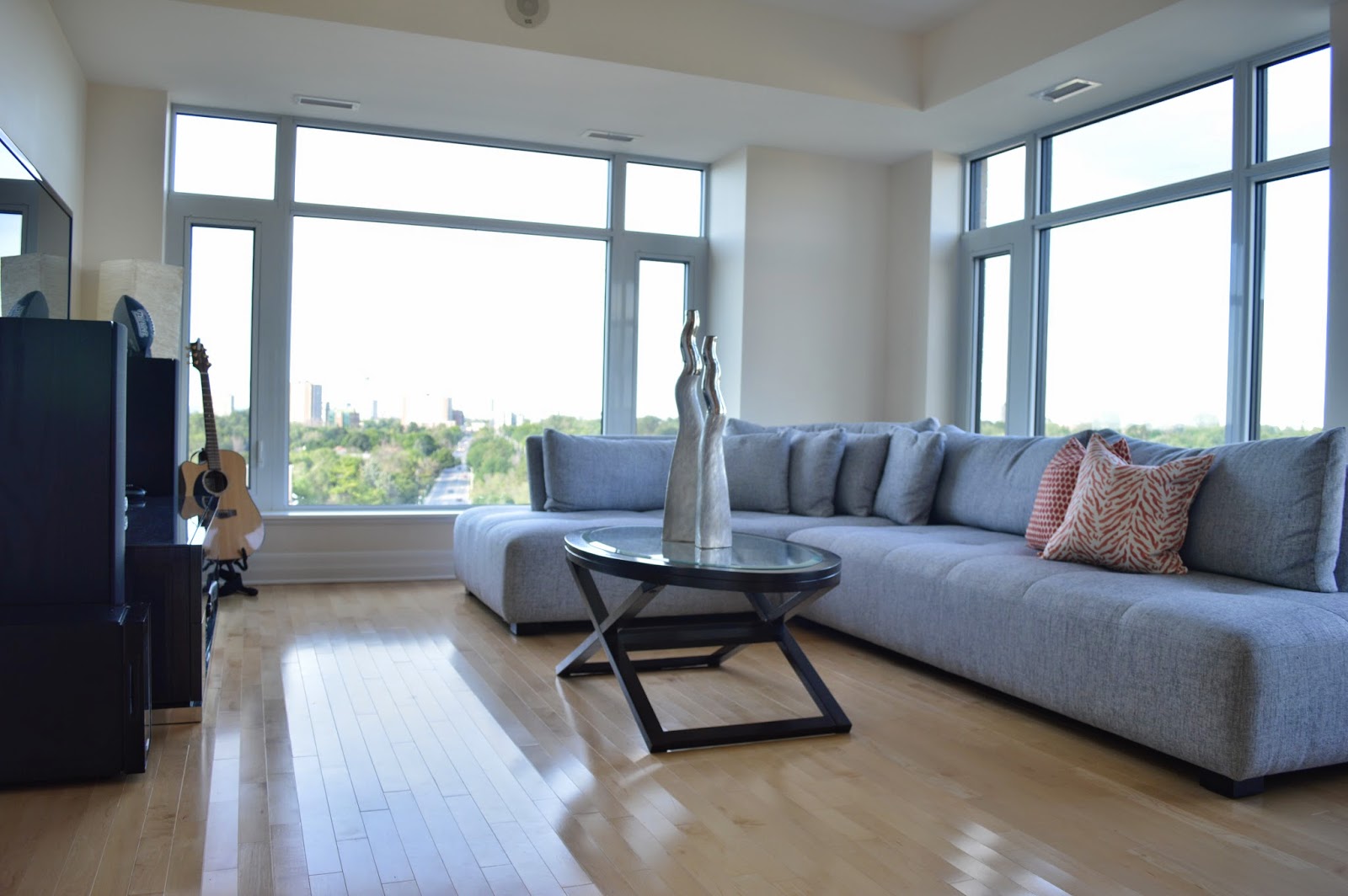 I’m finally sharing some photos of our finished living room. We ordered the couch a month before we moved, waited four months and it arrived at the beginning of July. Since then, we’ve sold the previous furniture, given my parents the end tables and moved the kitchen table into the room (it was originally in that nook space off the kitchen).
