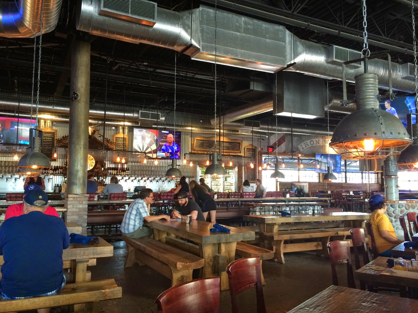 After being greeted, via sign, in German, you’re led through the massive, industrial pub to either a large booth, a long picnic-style table or a half booth (they also have a great outdoor, covered, patio). We got the latter and sat near the back, close to the massive big screen and open kitchen.