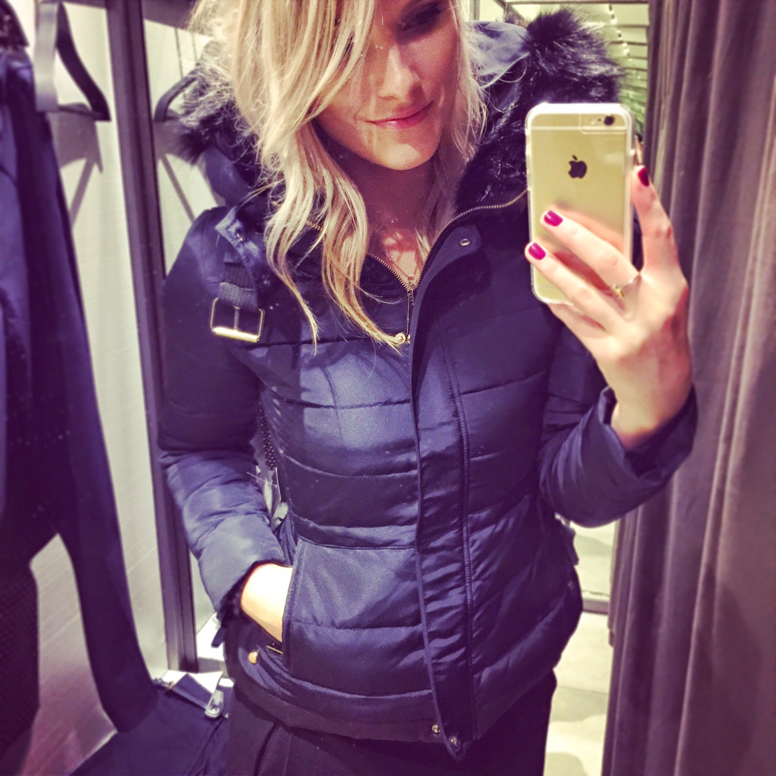 I also tried on this navy bomber at Zara (can’t seem to find it online) which I loved but again, a case of sleeves being too short and for something like this, you really can’t make a too-short sleeve work. Additionally, this would be a jacket I’d want to wear daily during the winter so in that case it should be a really good fit and warm (hello -40C).