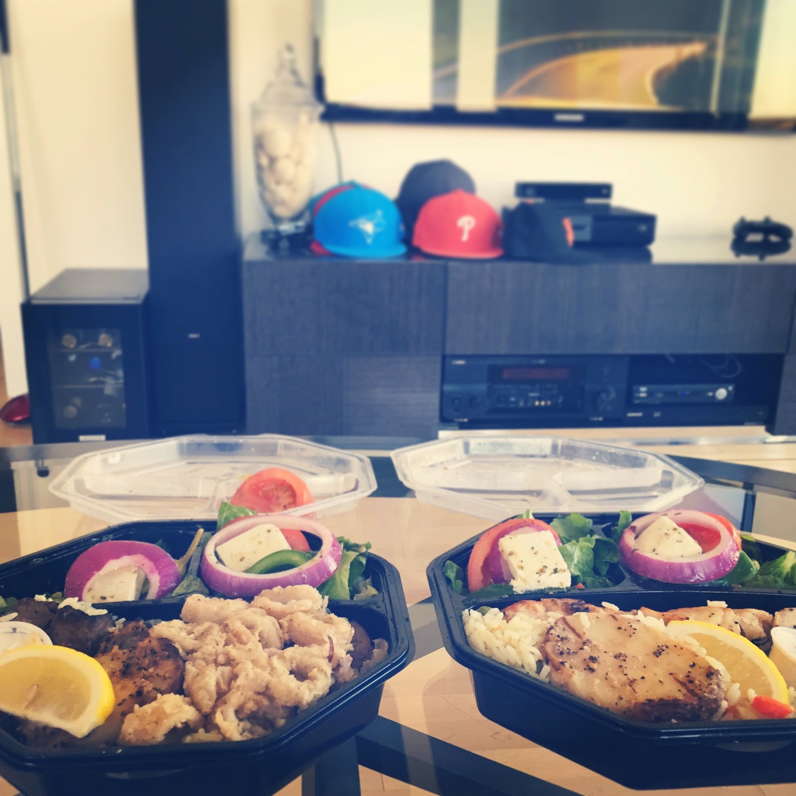 I spent Sunday evening relaxing with my honey, eating Greek on Wheels, catching a flick on the comfort of our couch.