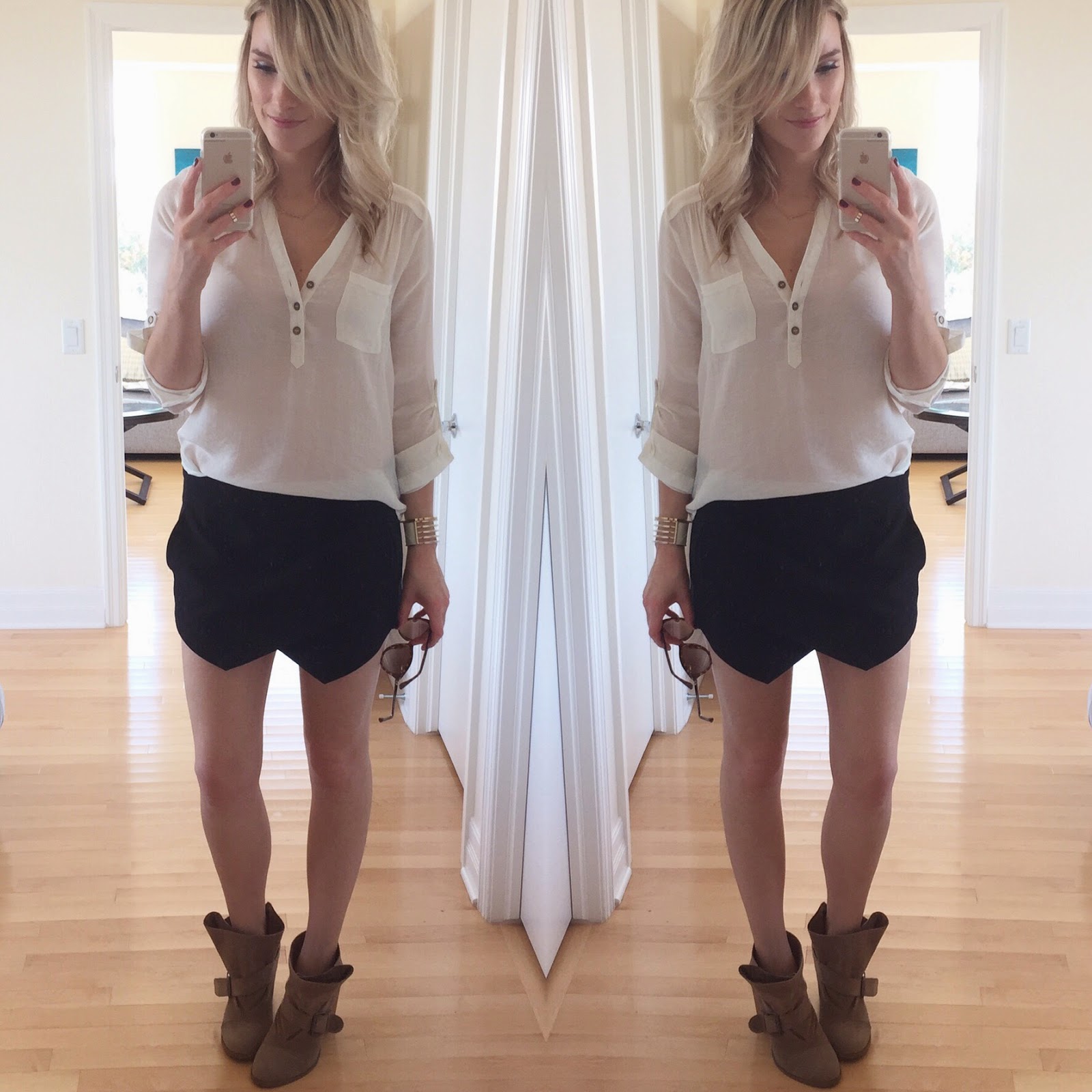 Outfit deets: F21 top, Sirens skort & Qupid boots.