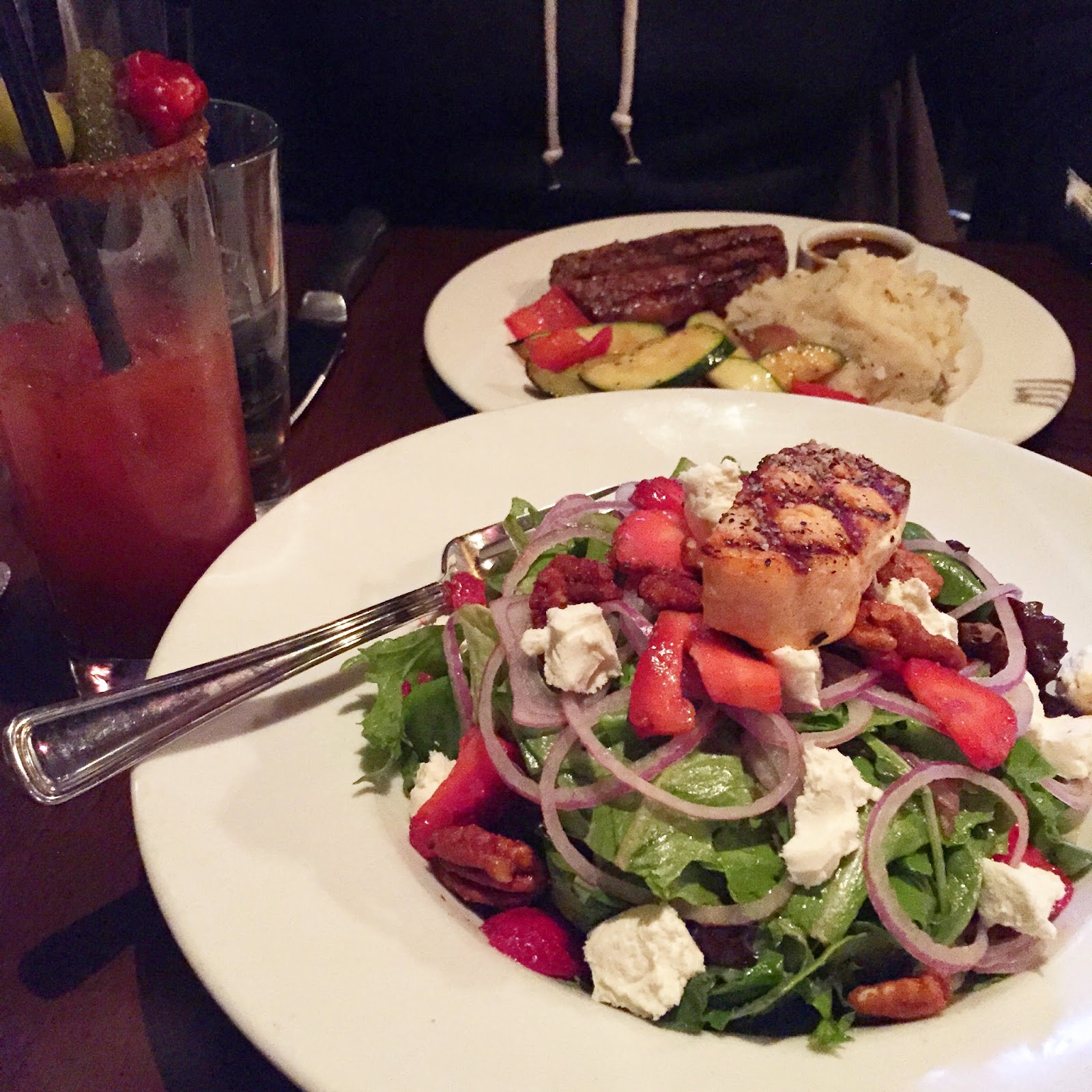 Friday night impromptu date night at Milestones with Marco. I had the California Salad with salmon (this is one salad I am crazy over and while I love to splurge on burgers and steaks when I go out to eat, this is loaded with goat cheese, strawberries and cartelized pecans it’s definitely splurge-worthy and so freaking delicious).