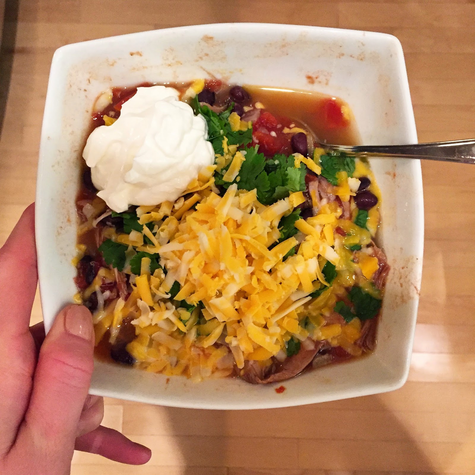 We spent the rest of the afternoon and evening in bed with a movie (Big Fish), an episode of our current show (Banshee), leftover pizza and this tortilla soup I made earlier in the week (recipe here).