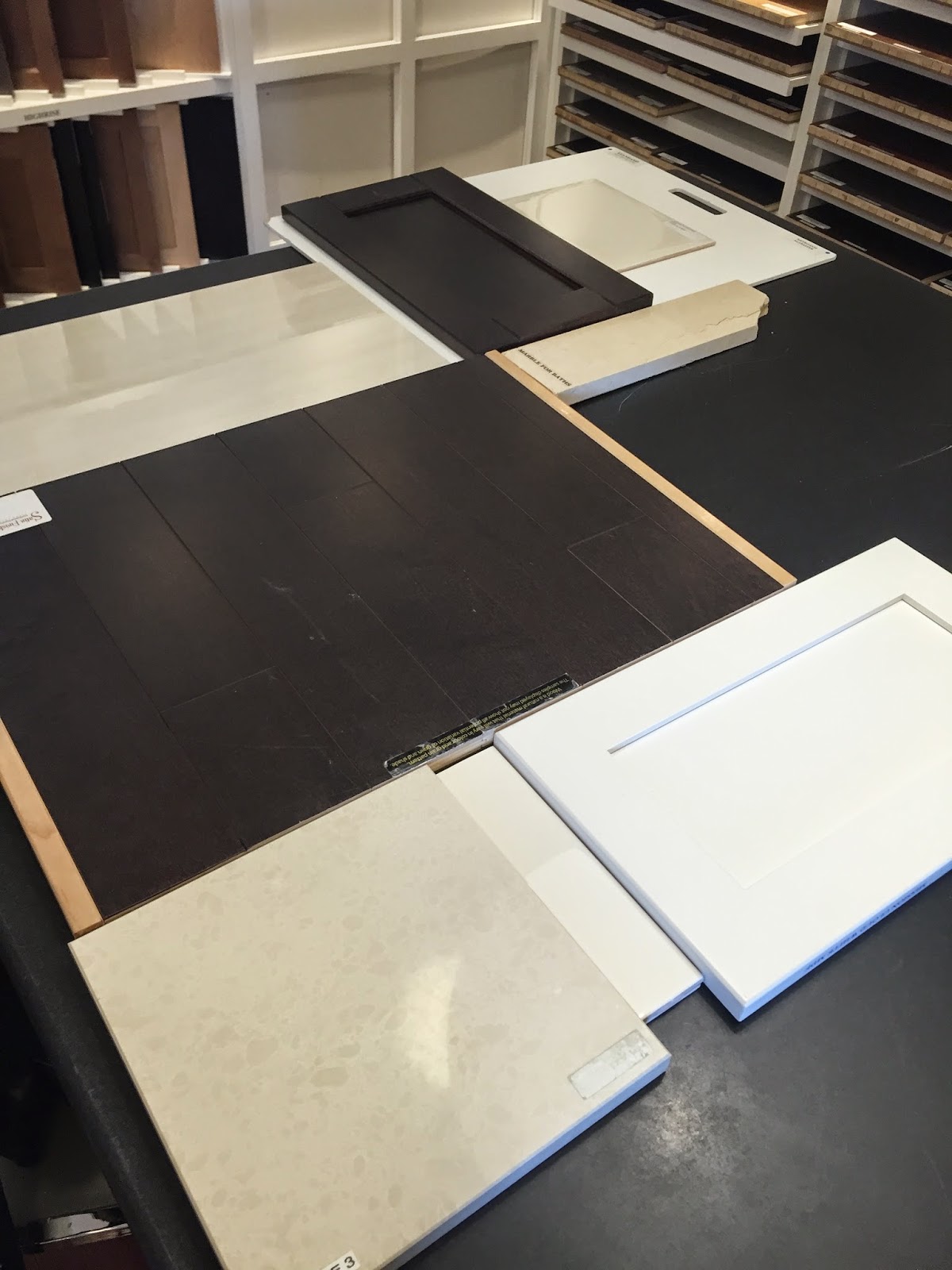 After going over some basic paperwork about appliances, faucets and whatnot, it was onto touching and choosing cabinetry, flooring and more. Working with the Designer, we pulled a few white cabinets before I chose my favourite. From there, the floors. I hesitated at the dark maple, giving it a loving look, and pulled the light hardwood instead.