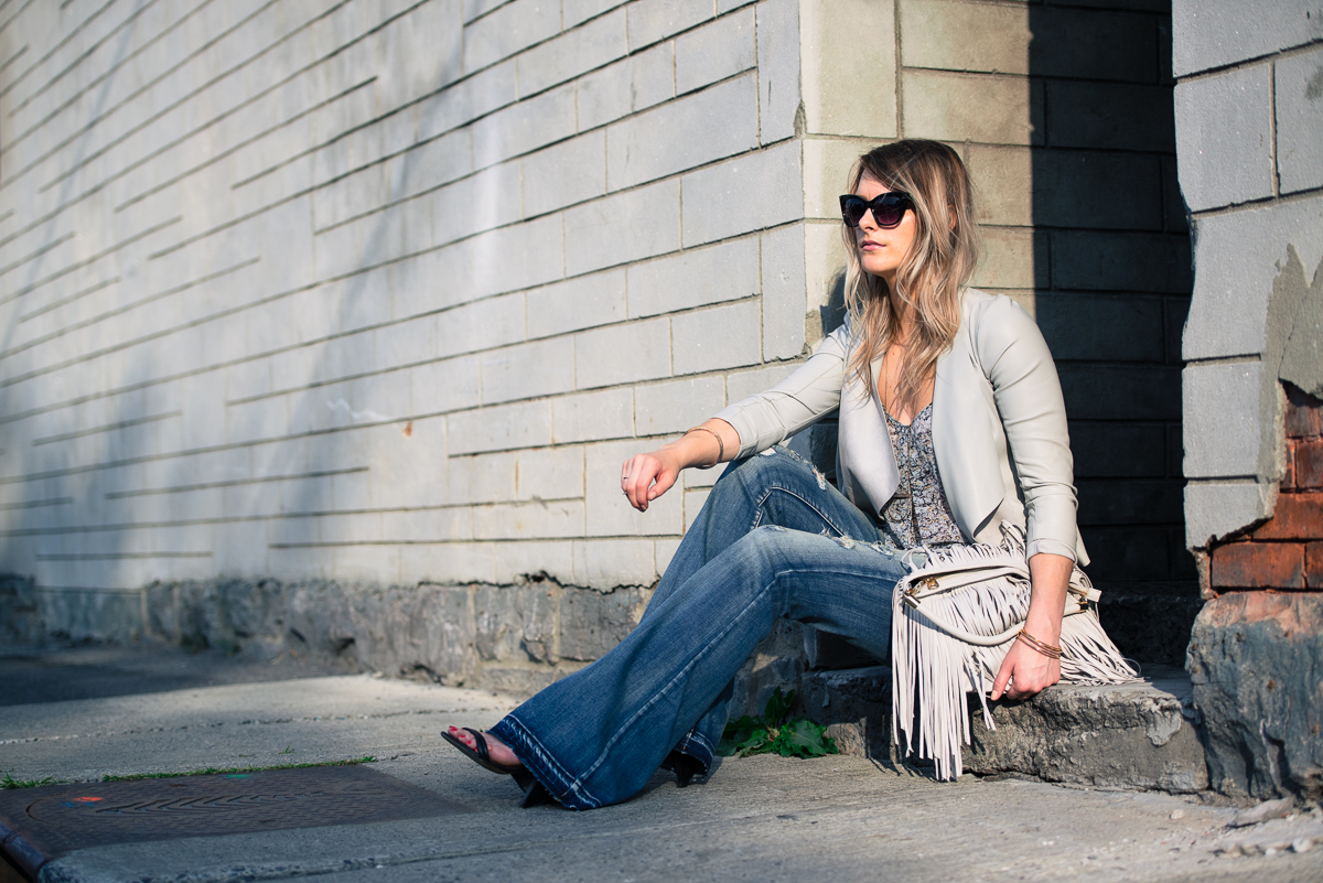 O U T F I T D E E T S : BLAZER | BCBG CAMI (LOVE THIS) | DISTRESSED FLARES | IRO HEELS | H&M FRINGE BAG (SIMILAR) | SUNGLASSES