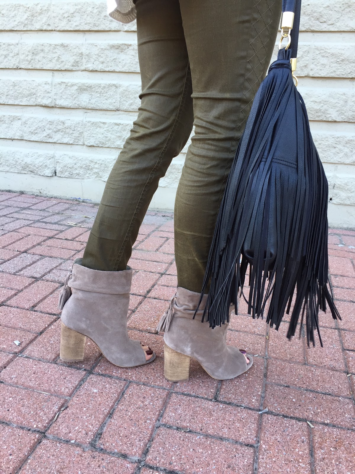Peep-toe booties are in my top 5 ‘to-wear’ items for Fall. It’s the perfect season for them and the last chance to show of the toes before the snow flies (well, at least in my neck of the woods). are adorable with the little tassels at the back and the chunky heel makes them sturdy and so comfy!