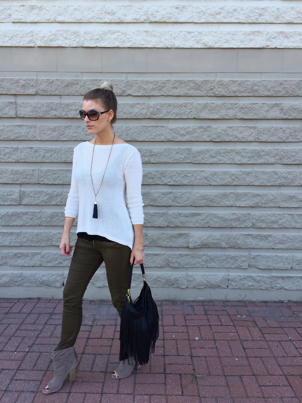 O U T F I T D E E T S : ZARA SWEATER (SIMILAR, SIMILAR) | ZARA PANTS (LOVE THESE) | | TASSEL NECKLACE | H&M FRINGE BAG (SIMILAR) | SUNGLASSES ON SALE!