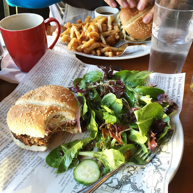 We grabbed a late lunch at La Forge–one of our favourite spots in Tremblant. I got the veggie burger which is essentially like a falafel patty and so good. That said, Marco’s fries were too tempting to resist!