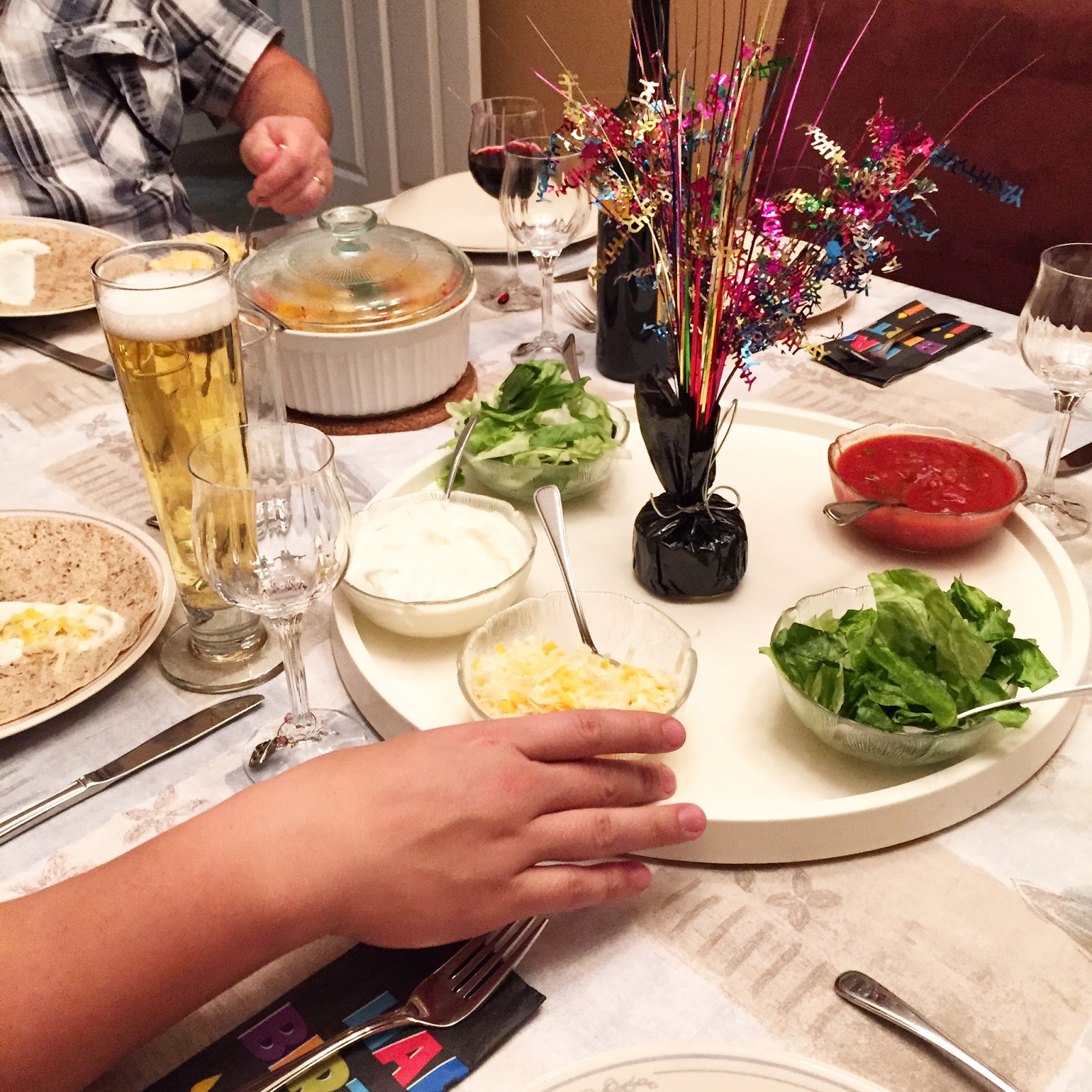 On Friday night, we had our annual family tree decorating night at my parent’s place. Since today is my boyfriend’s birthday, we turned it into a little surprise birthday dinner for him as well. We had a family staple for dinner, fajitas, and I picked up a brownie cake for dessert.