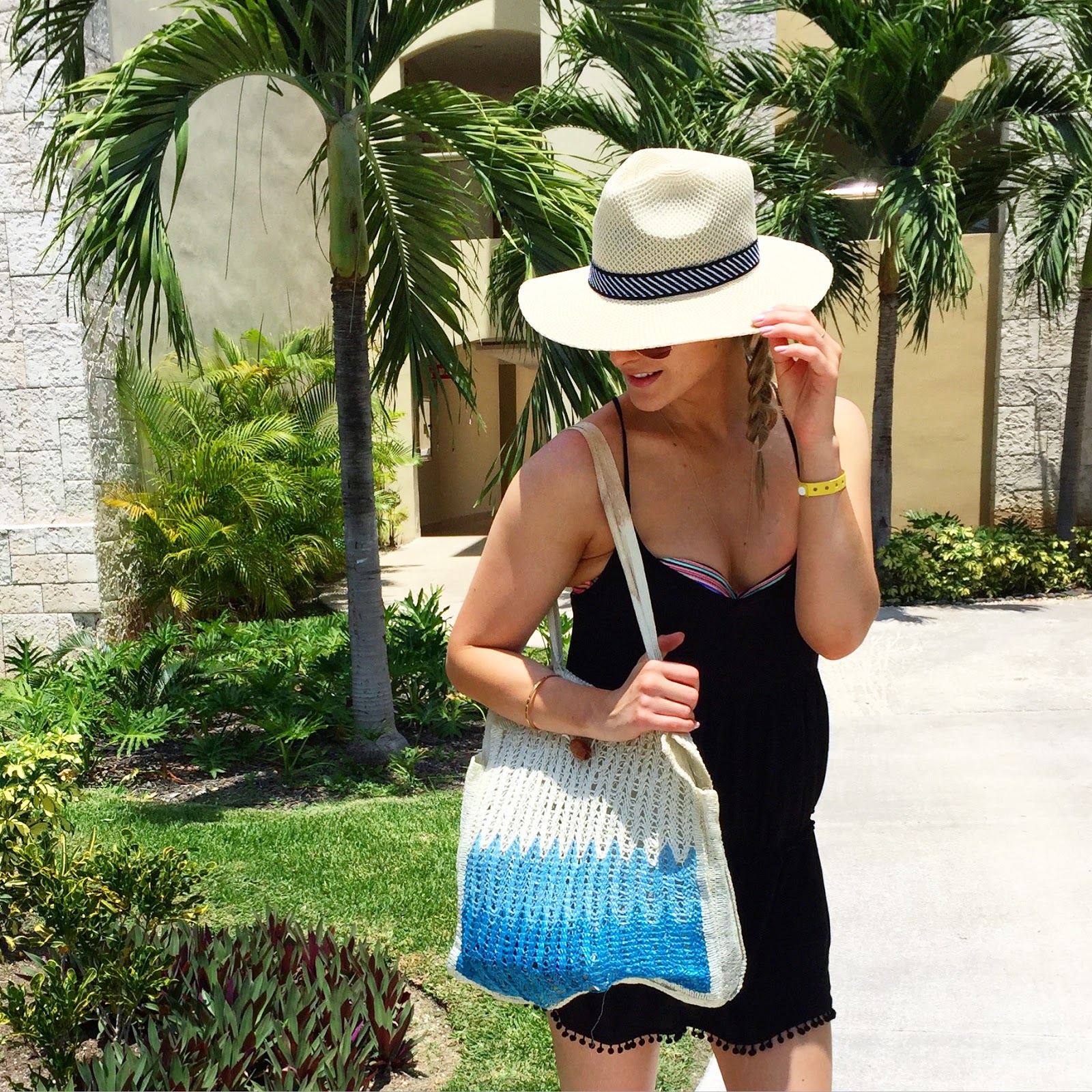 DOLLARAMA PANAMA HAT (SIMILAR) | URBAN PLANET ROMPER — OLD (SIMILAR) | BIKINI TOP | GLADIATOR SANDALS (SIMILAR) | SUNGLASSES (SIMILAR)
