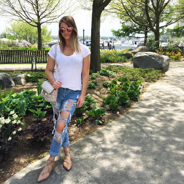 TEE | BOYFRIEND JEANS (SIMILAR, BUDGET-FRIENDLY) | LACE UP FLATS | BAG (BUDGET FRIENDLY OPTION) | SUNGLASSES