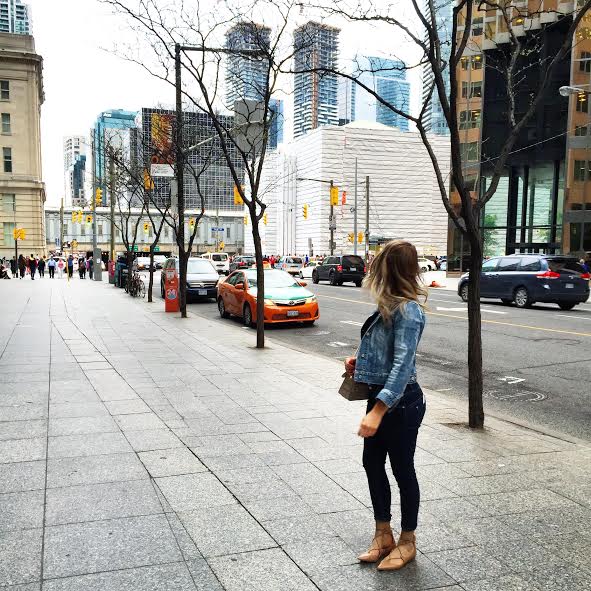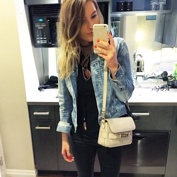 I know this outfit looks the same, but I promise it’s not, ha! Since it was just a 24 hour trip, I wore the same pair of shoes the whole time, and denim + black skinnies with different black tops on Saturday night and Sunday to fly home. The denim jacket was perfect, warmth-wise, for the evening and crisp morning.