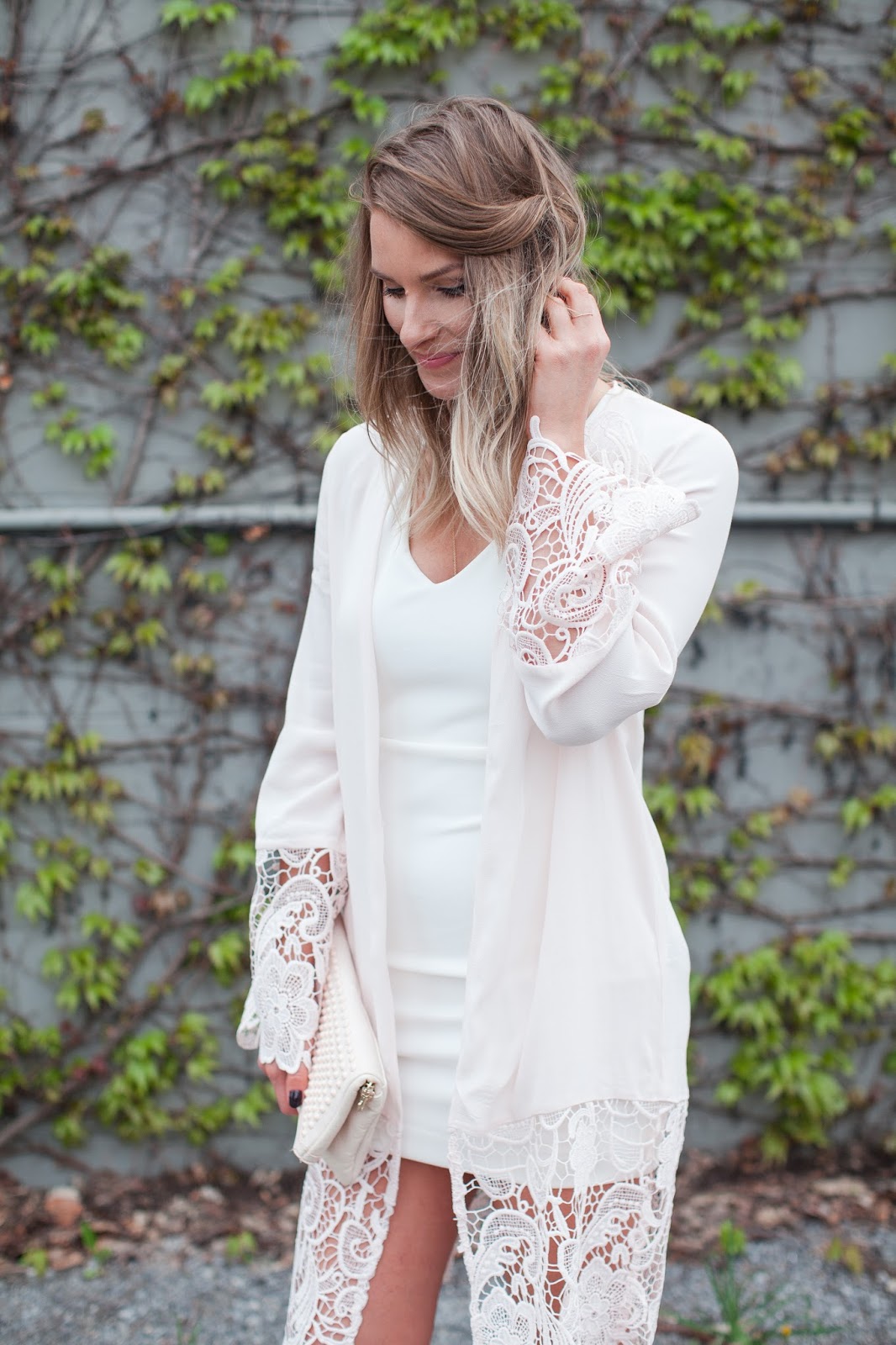 When I picked up this kimono the other day, I kept envisioning it with this snug, white dress from my closet… that I never wear. Seriously, you ladies know, tight is not really my thing when it comes to tops and dresses (okay, ), but I knew it would be the perfect date night look and so almost, ethereal and pretty.